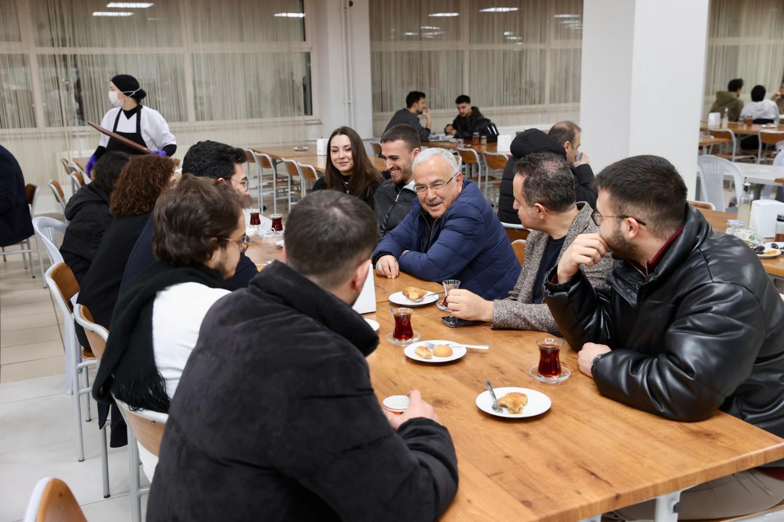 “Çorbamızı birlikte içelim diye buraya geldim. Hepinize başarılar diliyorum. İnşallah burada güzel hatıralar biriktirirsiniz. Bazılarınız burada kalır ve hemşehrimiz olur. Sizlerle aynı sofrada olmak beni çok mutlu ediyor. Üniversitenin temellerinin atılmasında emeği olan biri olarak sizleri burada görmek ayrıca memnuniyet verici. Büyükşehir Belediyemizin 19 ilçede sunduğu tüm imkanlar siz gençler için de var. Daha renkli ve verimli günleri birlikte yaşayalım.”